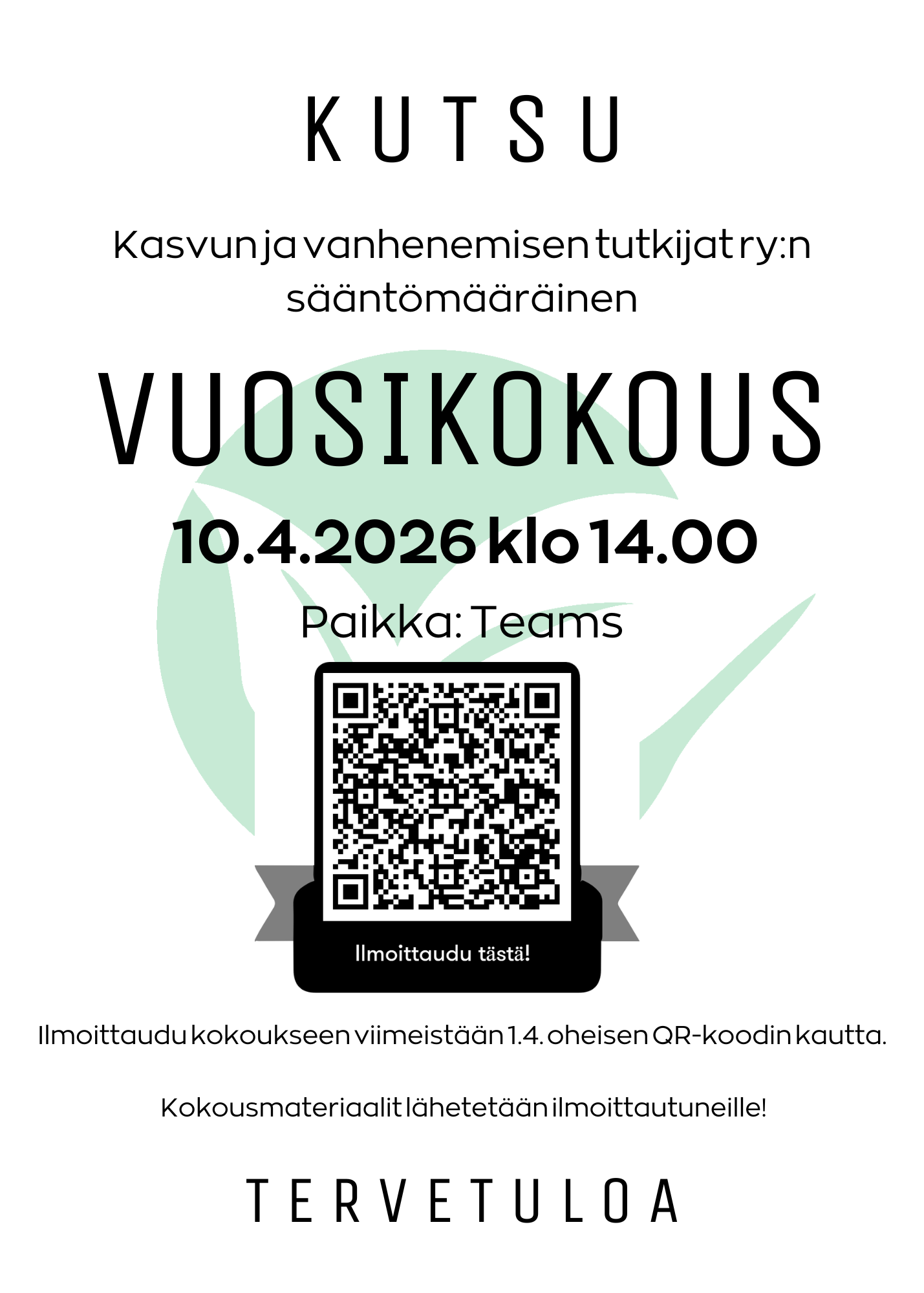 Tervetuloa Kasvun ja vanhenemisen tutkijat ry:n sääntömääräiseen vuosikokoukseen!